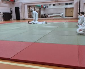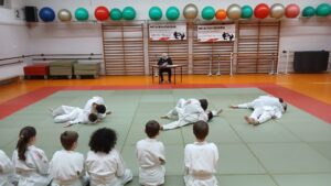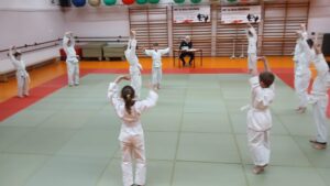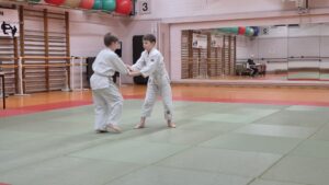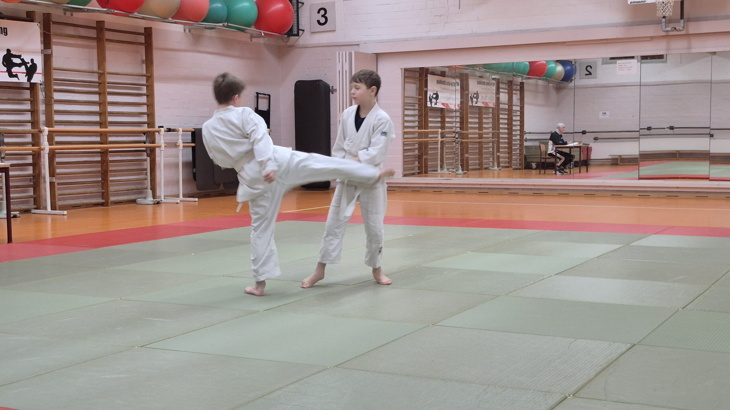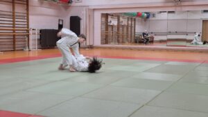 Sturz seitwärts, Schrittdrehungen, Gleiten und Körperabdrehen bildeten die Basis der Bewegungslehre. Hinzu kamen Atemitechniken, Abwehrtechniken, Bodentechniken sowie erste Hebeltechniken. Den Abschluss bildete das Prüfungsfach „Freie Selbstverteidigung“. Hier mussten sich die Kinder gegen fünf unterschiedliche Angriffe behaupten – ruhig bleiben, angemessen reagieren und die erlernten Techniken kontrolliert anwenden.